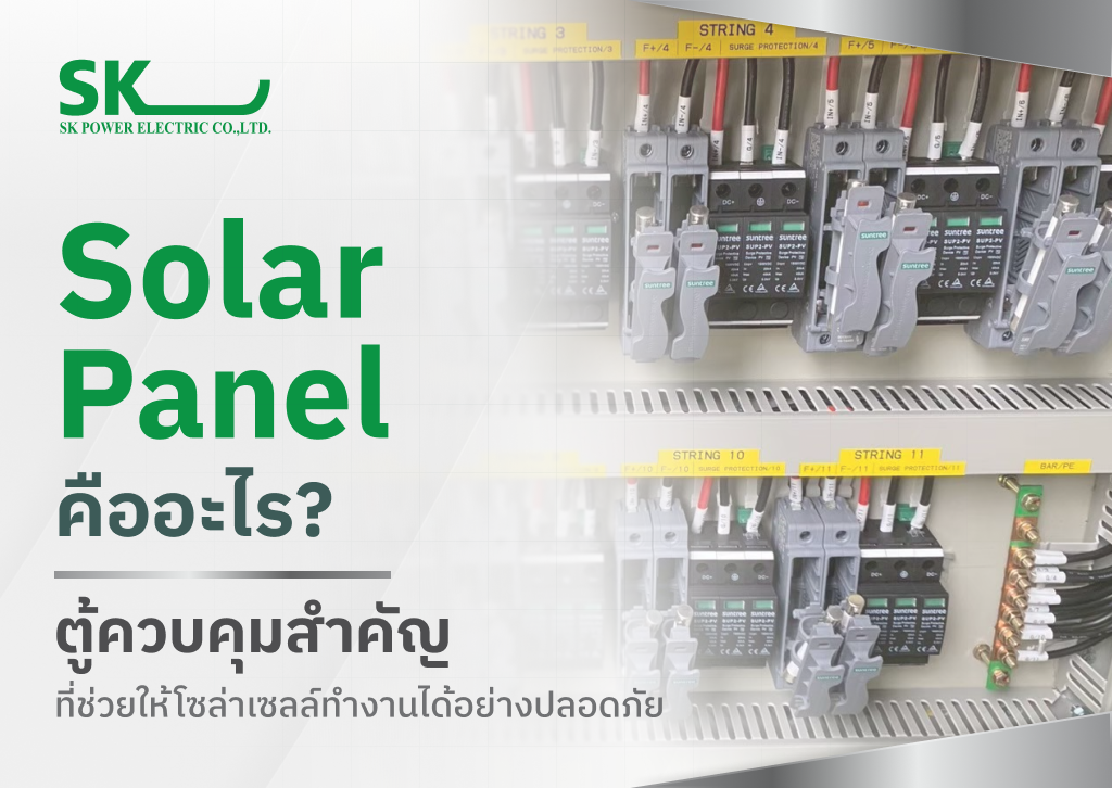 Solar Panel คืออุปกรณ์ตู้ควบคุมไฟฟ้า ที่ทำหน้าที่เป็นศูนย์กลางของระบบพลังงานแสงอาทิตย์ หน้าที่หลักคือการรวมพลังงานไฟฟ้าที่ผลิตจากแผงโซลาร์เซลล์หลายแผงเข้าด้วยกัน ก่อนส่งต่อไปยังอุปกรณ์อื่น เช่น อินเวอร์เตอร์ (Inverter) หรือแบตเตอรี่สำรองไฟ ทำให้ระบบไฟฟ้าแสงอาทิตย์มีความเป็นระเบียบ ง่ายต่อการจัดการ และปลอดภัยมากขึ้น